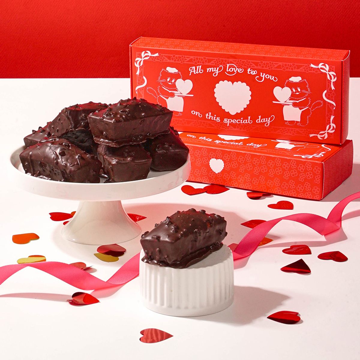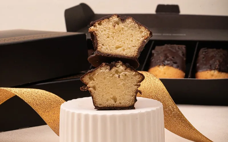 프랑스산 버터로 고급스러운 풍미를 더한 휘낭시에에 초콜릿 옷을 입혀 완성했어요. 쫀득쫀득하고 촉촉한 식감으로 버터가 농축된 고급스러운 풍미를 자랑해요. 커피나 우유와 함께 달콤한 간식 시간을 즐겨 보세요!