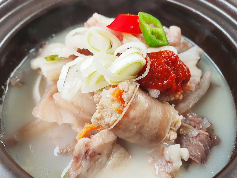 오랜 시간 정성을 담아 고아낸 사골육수는 잡내가 없이 깔끔하고 진한 맛이 일품이에요. 100% 돼지사골로만 끓여 그 맛이 더욱 깊습니다. 진짜 사골육수는 시간이 지날수록 걸죽해 지니 한번 확인해 보세요.