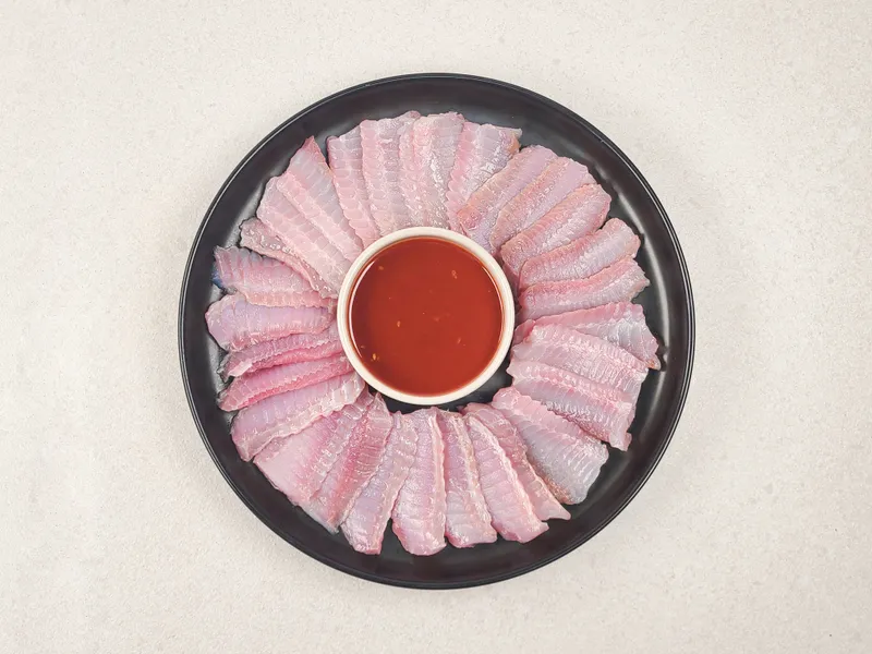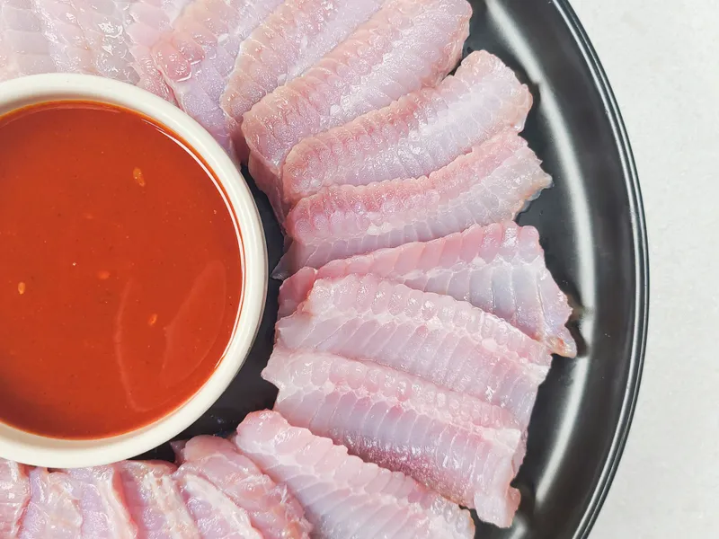 또한 홍어는 초장에 찍어 드셔도 좋지만 소금과 참기름을 섞어 만든 기름장에 찍어 드시면 숙성된 홍어의 참 맛을 느끼실 수 있어요.