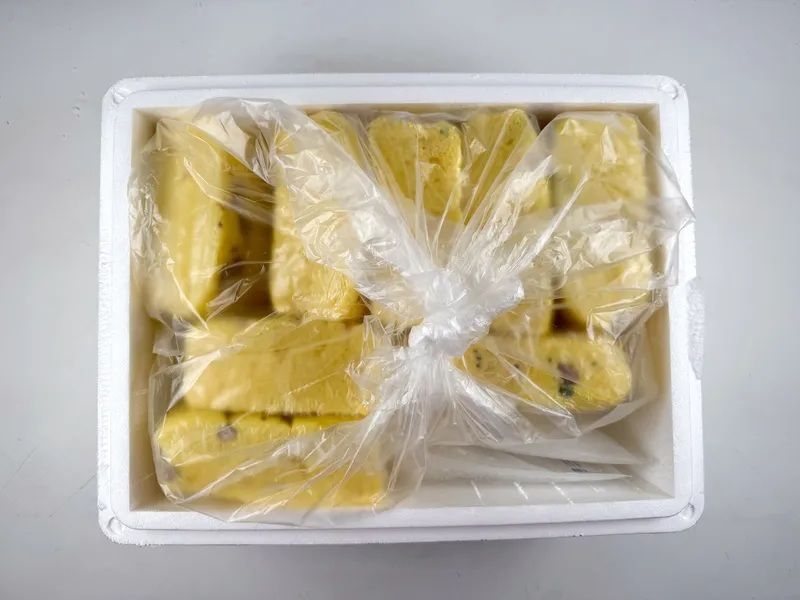 제품은 냉장 상태로 아이스박스에 아이스팩을 동봉해 안전하게 배송해 드립니다. (350g내외*8개 옵션을 선택하셨을 때의 배송 이미지입니다.)