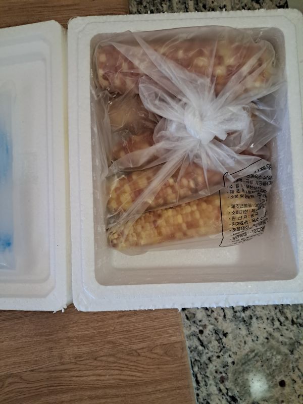 아이스박스에 맛있는 옥수수를 정갈하게 담았네요. 근데 원산지가 중국이라 좀 실망..ㅠ