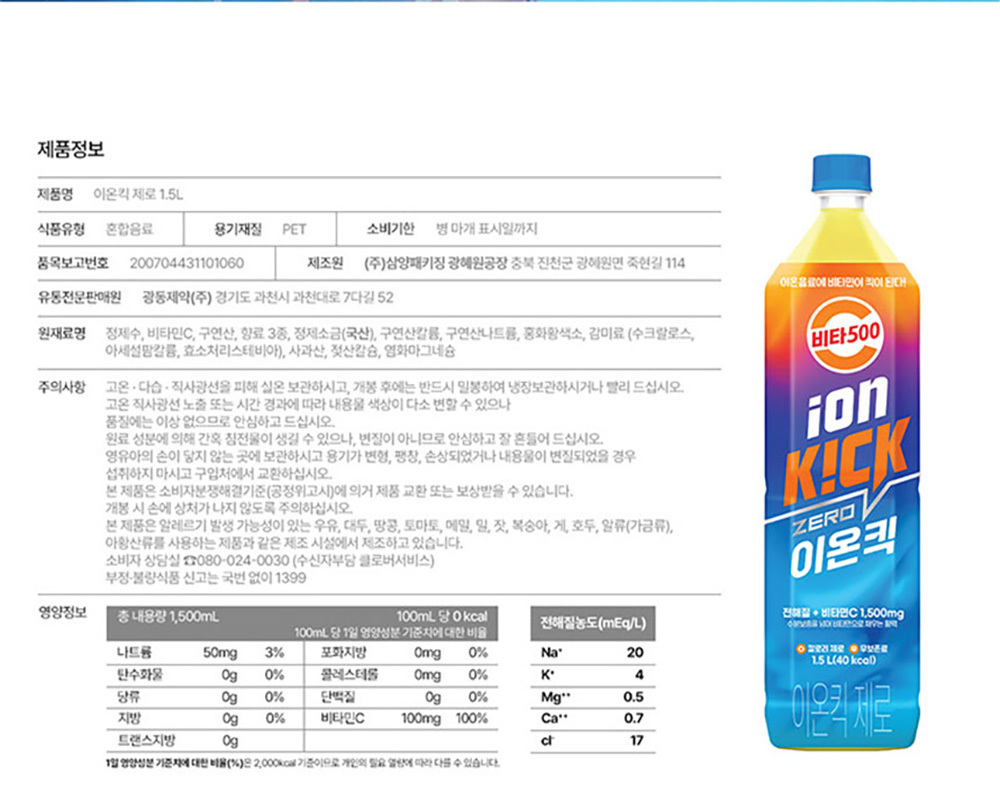 [G] 광동 비타500 이온킥 제로 1.5L 12입