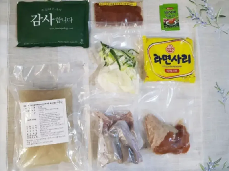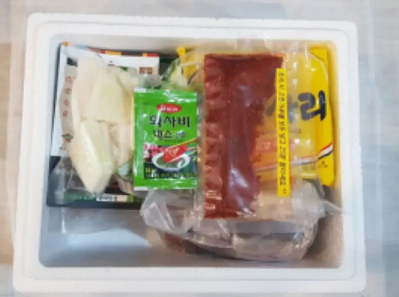 동태 640g 내외+알과 곤이 250g 내외+육수 1350ml+채소+라면 사리+와사비 간장