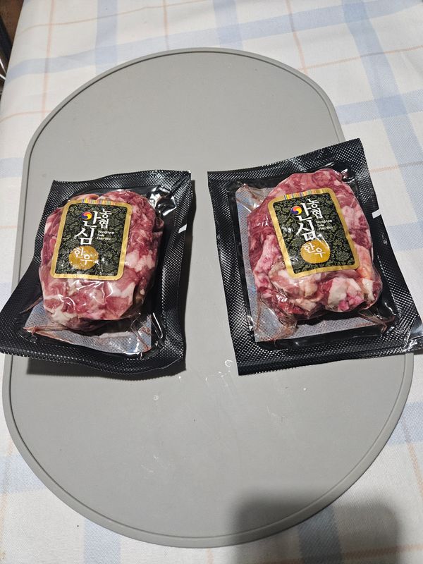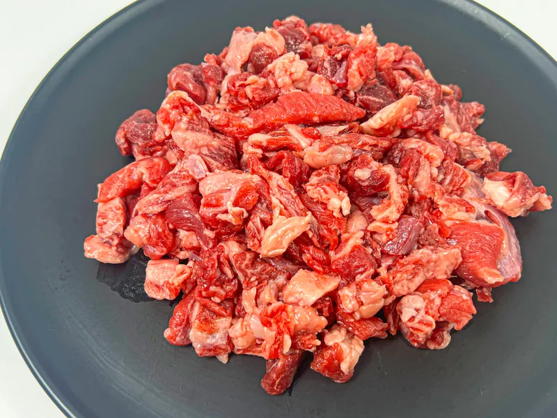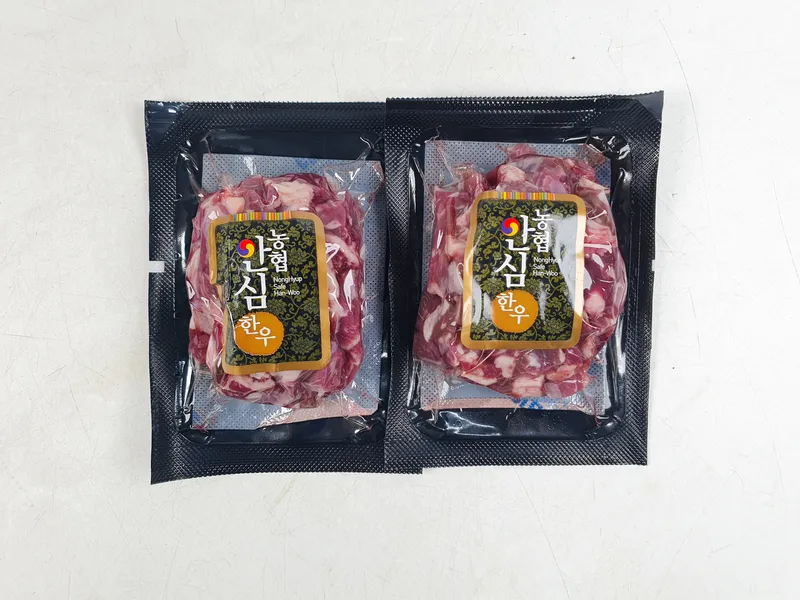 -기계가 아닌 칼로 썰어낸 고기라 모양과 크기가 일정하지 않을 수 있습니다.