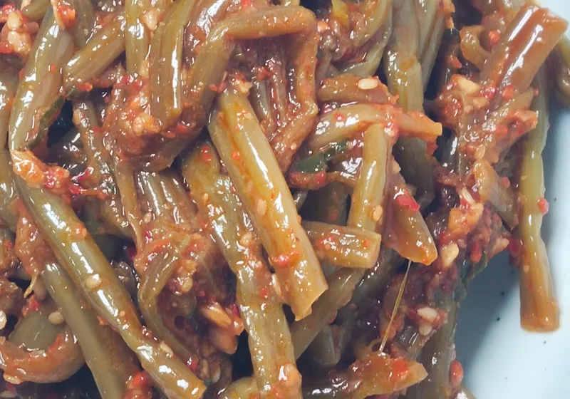 고구마 줄기볶음은 아삭아삭하면서도 부드러운 식감이 특징이에요. 은은한 향과 아삭한 식감이 어우러져 자꾸만 손이 가는 중독적인 맛의 반찬입니다.