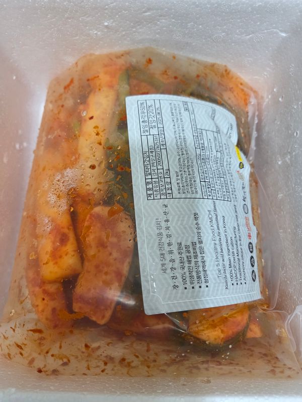 받자마자 꺼내 먹었는데 아직 간이 덜베어서 넘 슴슴요. 익혀 먹을려고 실내에 뒀네요. 배추김치같이 젖갈마니도 구매할때 해주심 감사요.