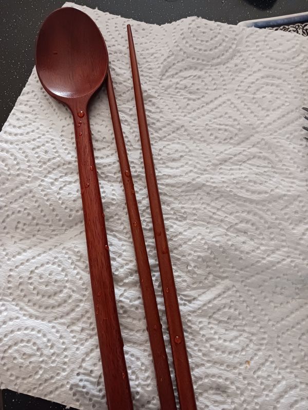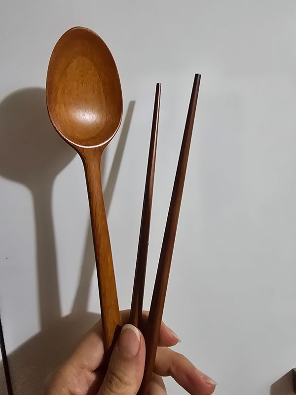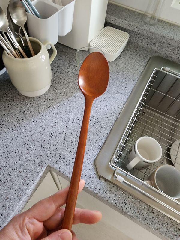 모양도 메끄럽고 예쁘네요. 스텐 숟가락을 나무 젓가락으로 교체해서 써야겠어요. 옻 칠이 오래 갔으면 좋겠습니다.