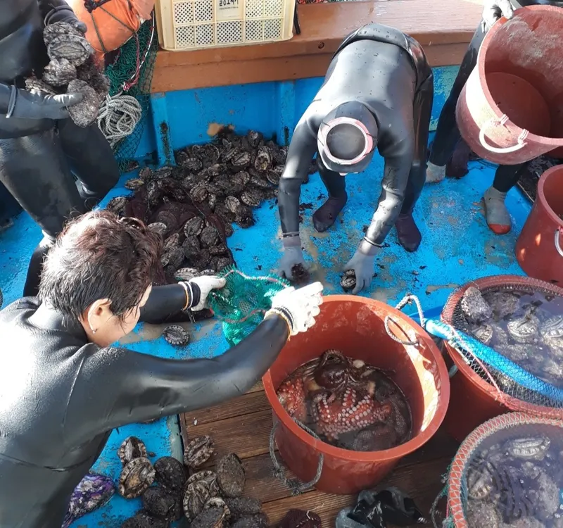 통영 해녀 분들이 청정해역 통영 앞바다에서 어획합니다.