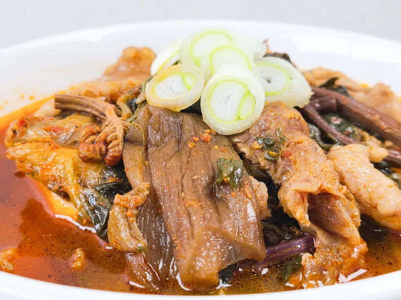 국내산 우거지와 한우가 가득 들어있어 한 끼 든든하게 드실 수 있어요. 한술 가득 떠 국물과 함께 한입 먹으면 이만한 별미도 없답니다. 별다른 반찬 없이도 밥 한 공기 뚝딱 비우실 수 있을 거예요 :)