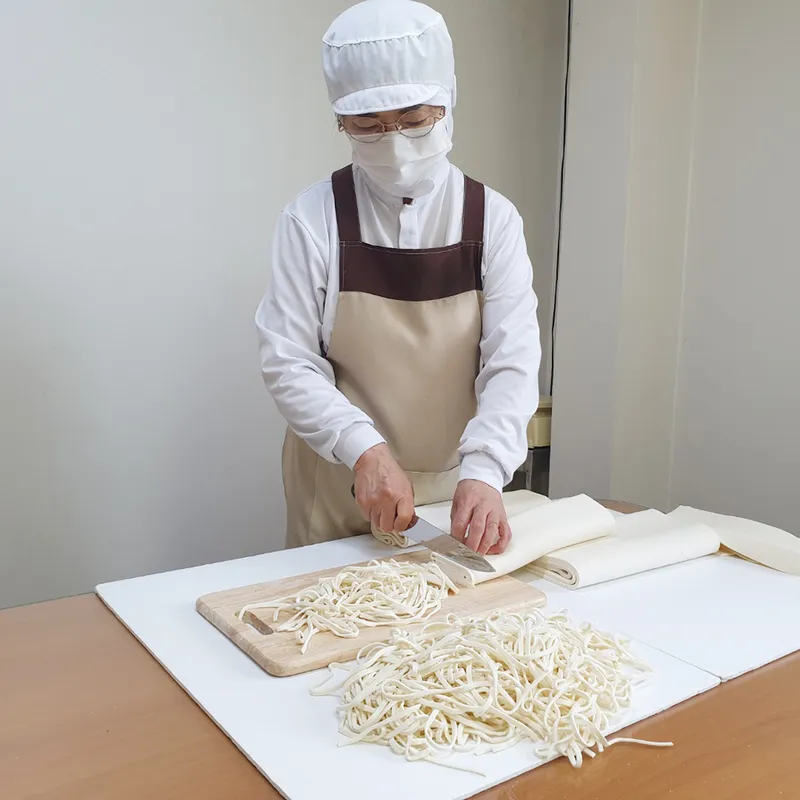 26년 노하우를 담아 탱글탱글 쫄깃한 칼국수면을 만들었습니다. 생면 반죽을 여러 번 치대고 펴서 만들어 더욱 부드러운 식감을 자랑합니다. 집에서 반죽한 칼국수 맛 그대로 냈으니 힘들게 반죽하지 않으셔도 됩니다!