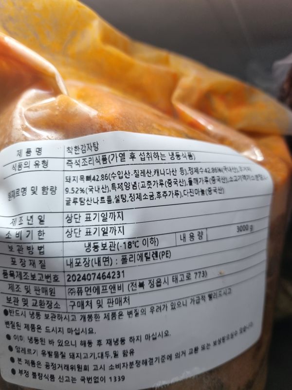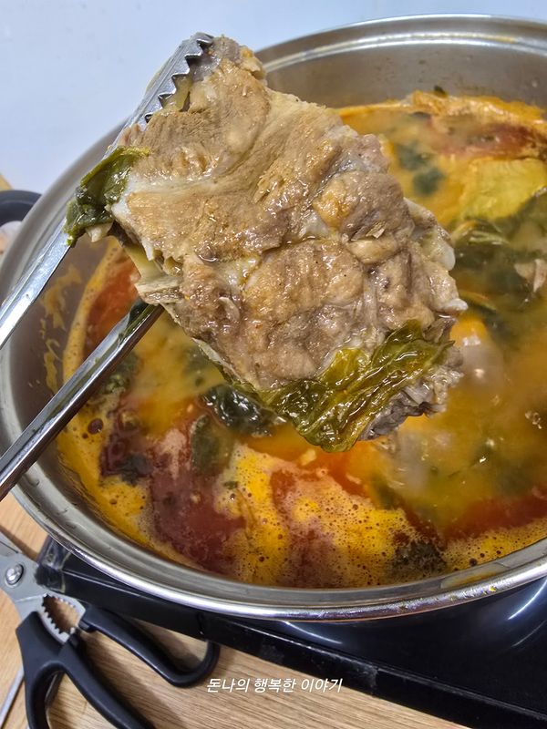 한덩이가 툭 비닐에 들어 있었어요 뭐가 이렇게 한덩이로 왔대?하면서 밤새 해동시켜 냄비에다 바글바글 끓여서 먹었답니다 국물 맛도 맛있고 고기도 푸짐하게 넣어주셔서 4인 가족 두끼 먹고도 남았어요 남편도 맛있다고 애들도 싹싹 다 먹네요 전문 식당가서 먹는 맛 난다며 좋아합니다 맛있어요! 강추!