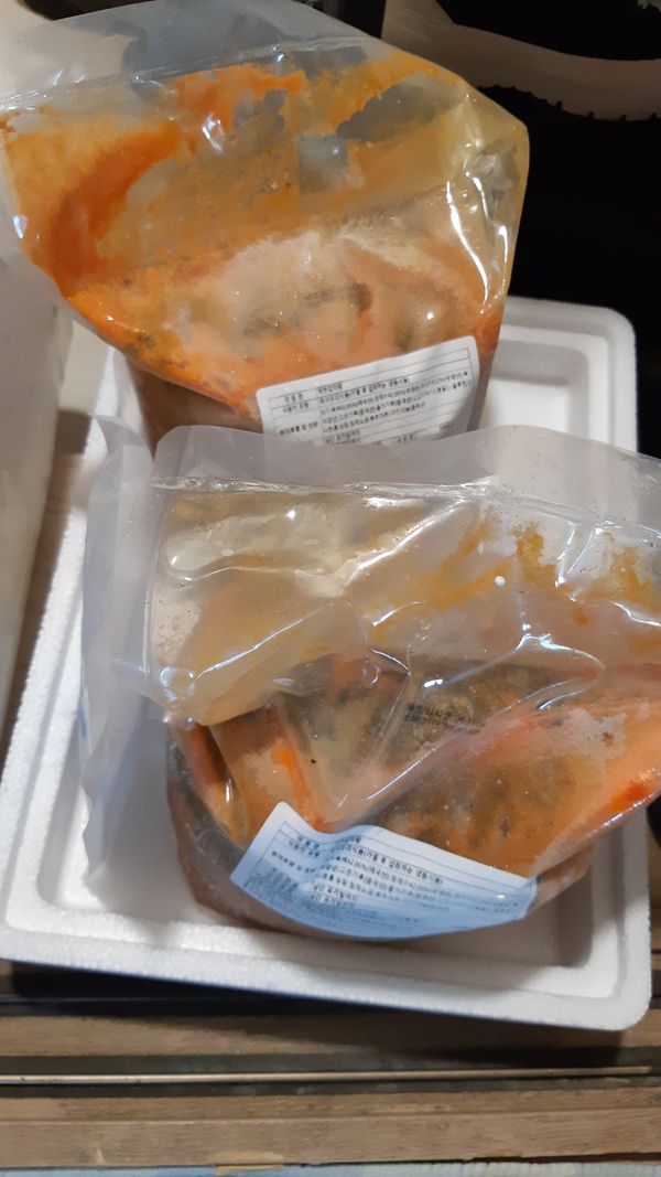 꽝꽝얼어서 깔끔하게 포장되어 왔어요. 한개는 딤채에 한개는 하루를 베란다에 두었는데 해동이 안되었네요~~^^ 신랑이 좀 예민한 편이라 고기 냄새가 조금 나서 후추랑 마늘 생강을 넣었어요. 맛있네요 저는 우거지 먹었는데 예술이네요.ㅋㅋ 고기 추가가 있으면 더 좋겠습니다~~^^