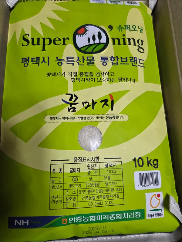 [25년 햅쌀] 찰진 식감의 슈퍼오닝 평택 꿈마지 쌀 10kg(특등급)
