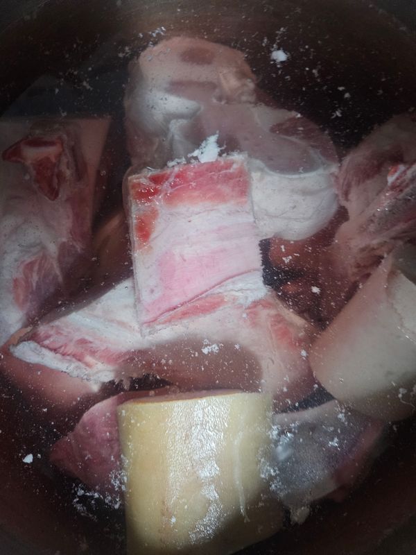 1. 뼈를 찬물에 2-3시간 이상 담가 핏물을 충분히 빼세요