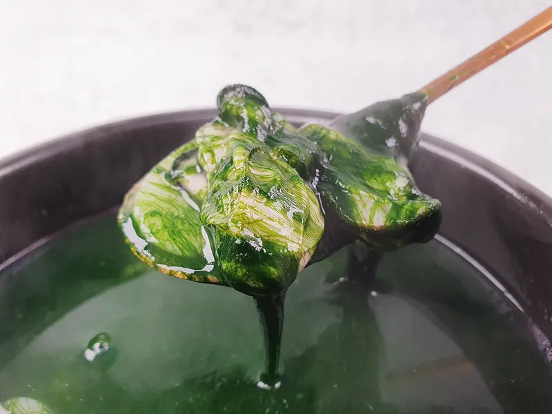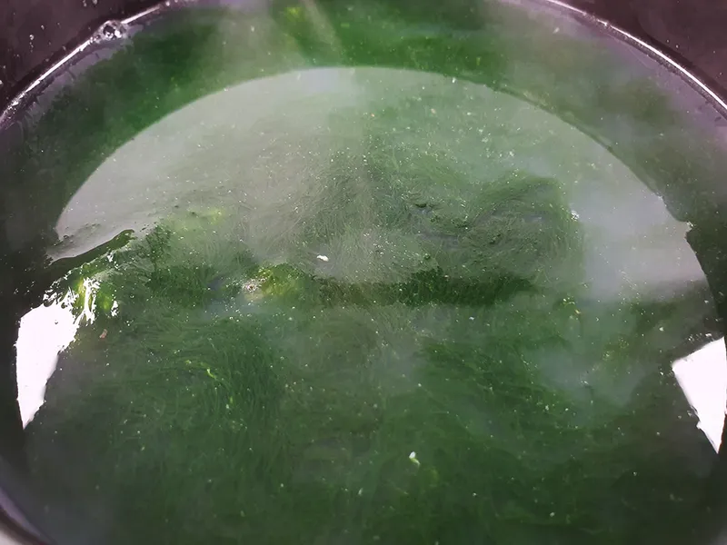 3. 최대한 손으로 걷어낸 뒤 바닥에 남아 잇는 매생이는 버려주세요. 이물질이 혼합되어 있을 수 있습니다.