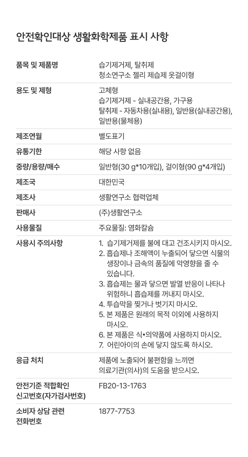 옵션: [25/06/25 수령] 청소연구소 젤리제습제 일반형 10개입*1개