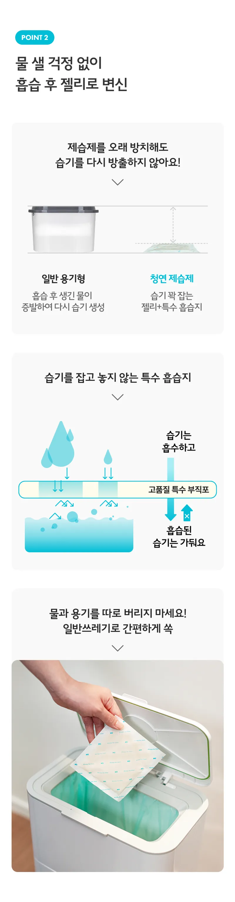 물 샐 걱정 없이 편리한 제습제!