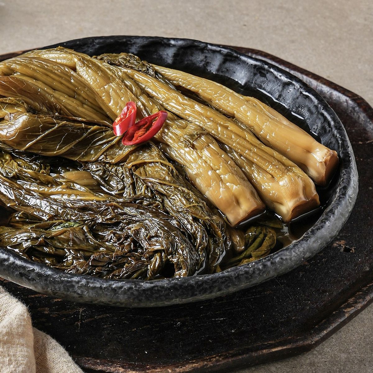 만드는 과정이 쉽지 않은 장아찌, 목석 같은 기다림 끝에 만나볼 수 있는 별미 반찬이죠. 신선한 전라도 여수 갓을 사용하여 갓 피클(장아찌)을 만들었습니다. 갓 특유의 알싸한 향에 짭조름하면서 시큼한 소스 맛이 조화롭게 어우러져 있죠.
