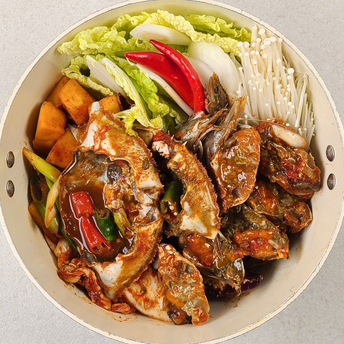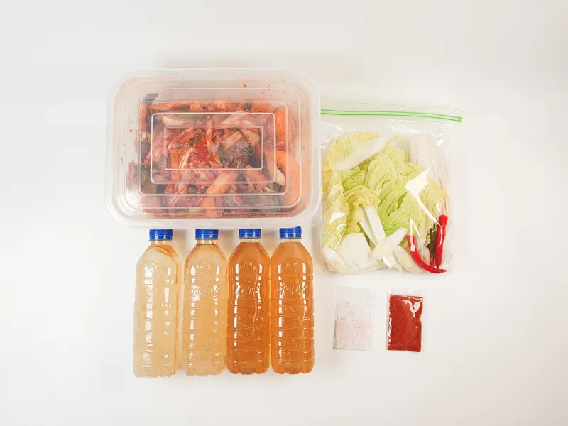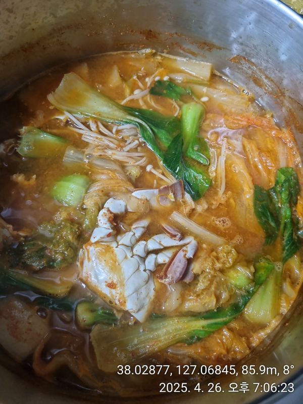 꽃게, 새우, 채소묶음, 육수, 소금, 고춧가루로 구성되어 있습니다.