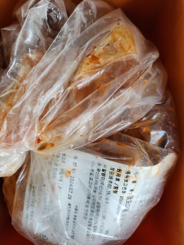 이번이 세번째 구매인데 두번째 까진 참 맛있었는데 이번엔 좀 밍숭해서 아쉬웠어요 양념이 좀 약했고 김치에 물이 많이 생겨서 배추가 양념에 씻긴듯 해서 더 맛이 좀 못했어요