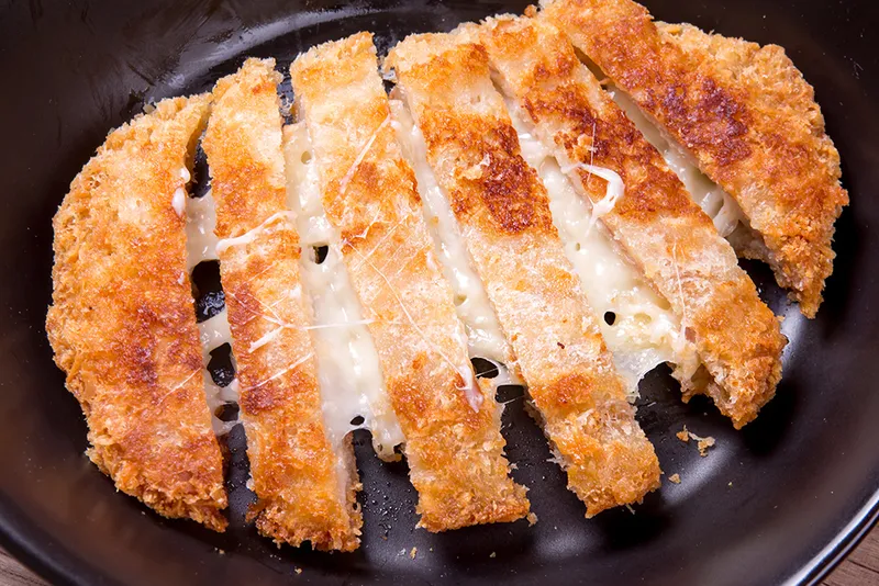 2가지 황금 비율로 섞은 습식 빵가루를 사용하여 촉촉하고 바삭한 식감을 냈습니다. 튀김 가루도 두껍지 않아 더 바삭한 식감을 자랑합니다.