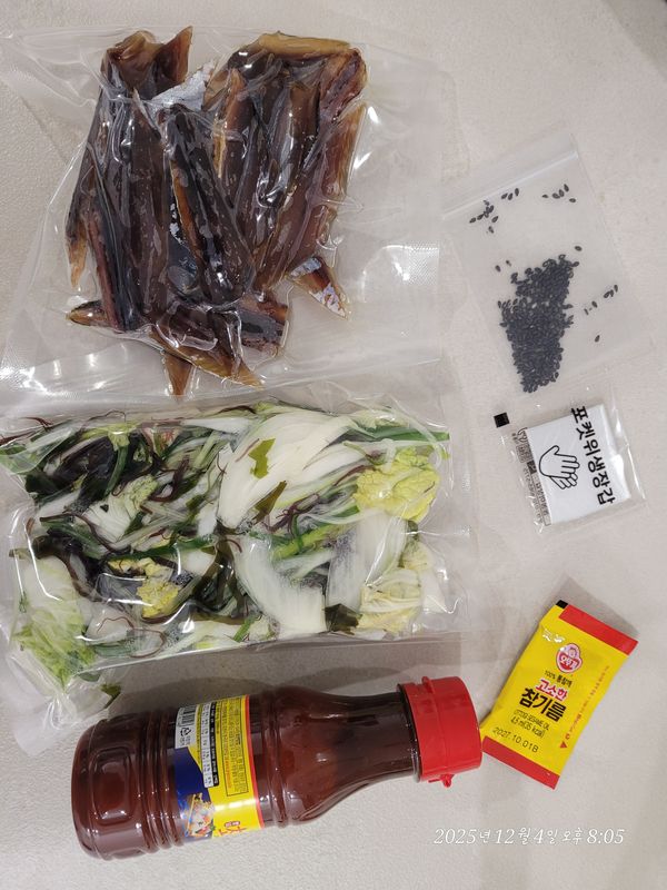 깔끔한 밀키트 세트에요~ 믹싱볼만 준비하면되네요 해조류,야채류,양념 비닐장갑까지ㅎ 과메기 쫄깃쫄깃하고 잘어우러져 넘맛있어요
