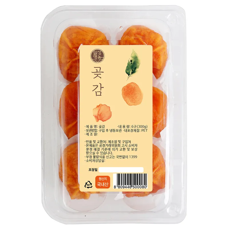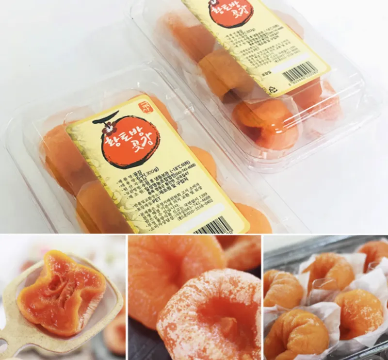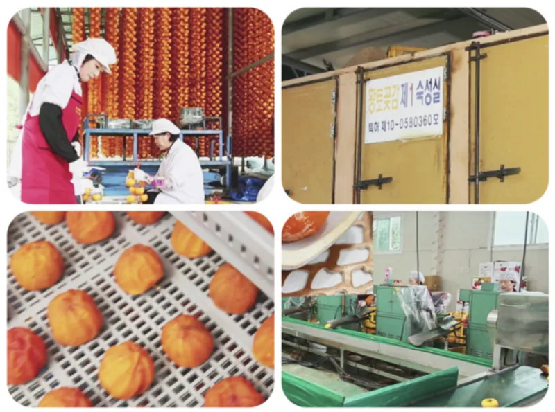 자연 건조 후 2-4일 밀폐된 공간인 황토방 건조실에서 건조 후, 다시 황토방 숙성실에서 숙성을 거치면서 탄닌 성분의 떫은맛이 제거되고 당도가 높아집니다.