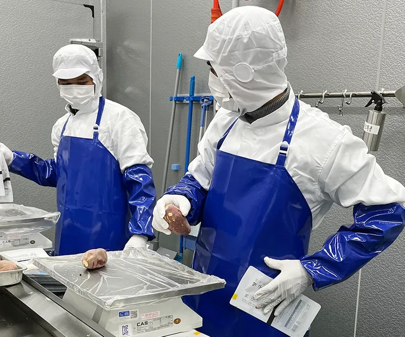 호박고구마와 밤고구마의 장점만을 합친 베니하루카 품종만 골라냅니다