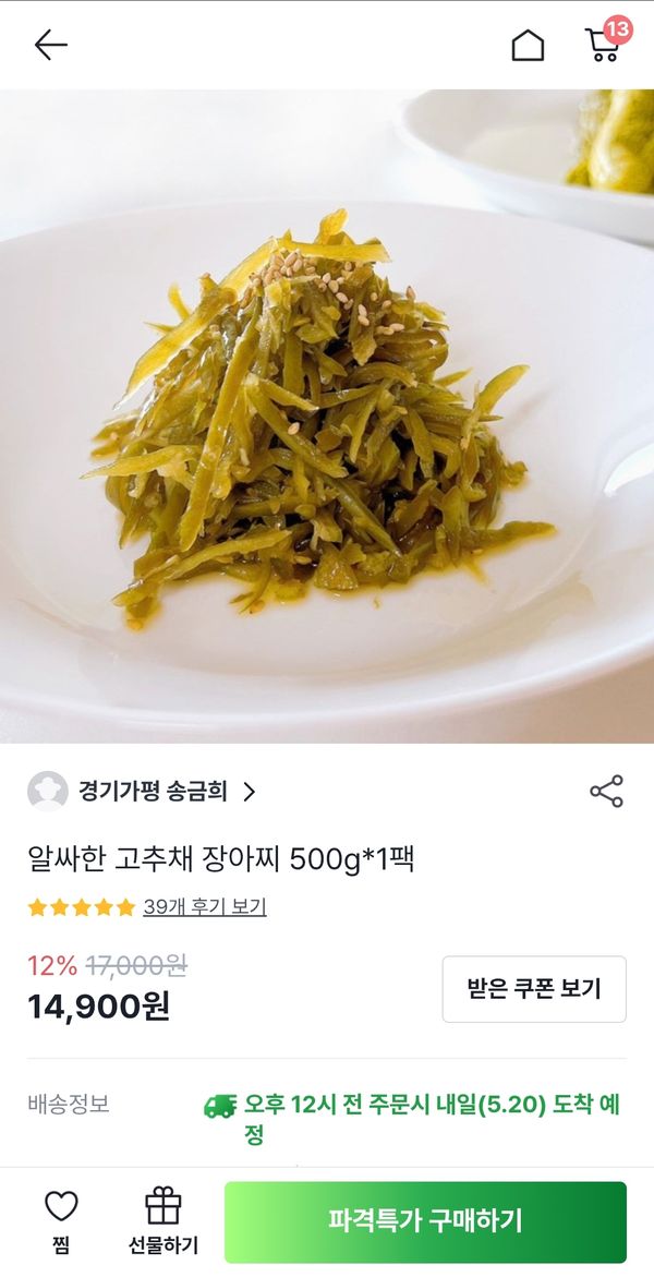 옵션: 고추채 장아찌 500g*1팩