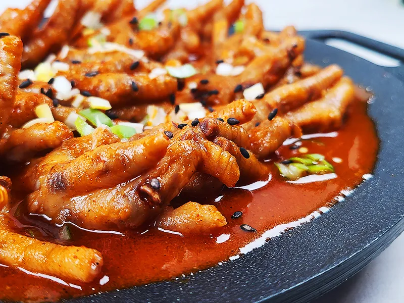 최상급 닭으로만 엄선한 100% 국산 닭발만을 모아 비법 소스로 활활 끓여 냈습니다. 또한 건강한 맛을 위해 조미료는 일절 넣지 않았어요. 뜨끈한 국물에 닭발이 퐁당 적셔진 맛을 즐길 준비되셨나요?