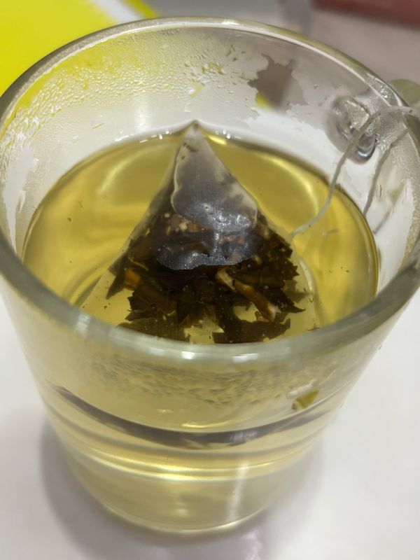 금빛황차. 처음에 뜨거운 물에 넣었을 때는 눈으로는 노란색이 약간 가미된 녹색으로 보여 이름에 왜 '황차'가 들어가있을까 싶었는데 사진을 찍으니 노란색으로 보입니다~ㅎㅎ 맛은 잘 모르겠으나 건강에 좋을거라 믿겠습니다!