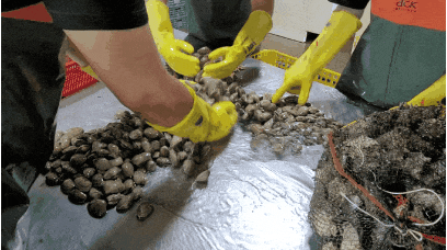 자동화 기계를 이용하지 않고 세밀한 선별을 위해 수작업으로 세척과 깨진 바지락을 선별합니다. 1차 해감된 바지락을 깨끗한 통영 해수에 담아 보내드려요.
