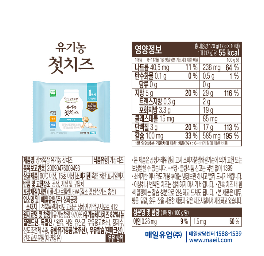 G 상하목장 STEP 1-4 유기농 첫치즈 170g 80매 모음딜
