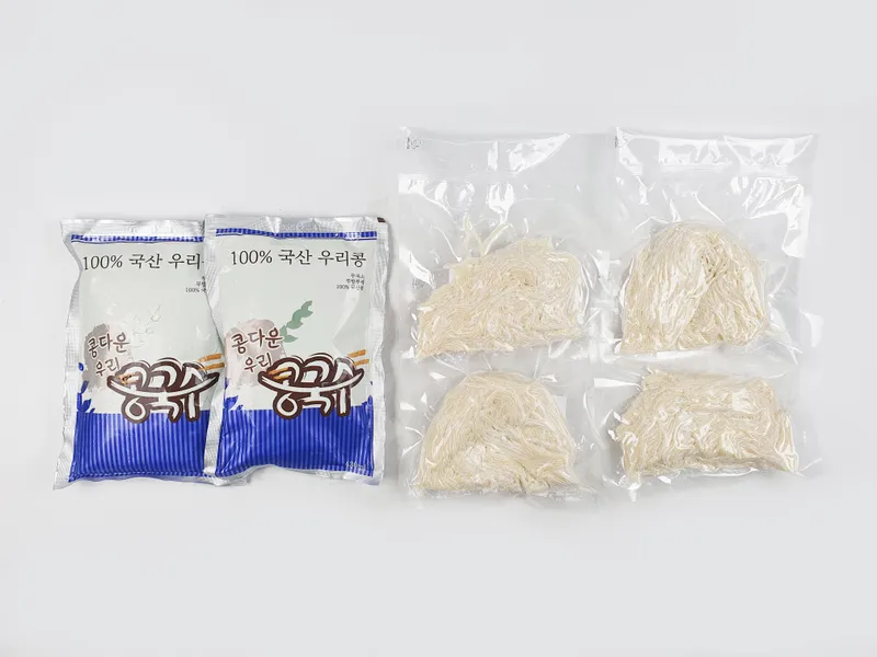 콩국수: 콩국수 1인분당 콩물 430ml*1팩과 면 160g*1봉으로 구성되어 있습니다.