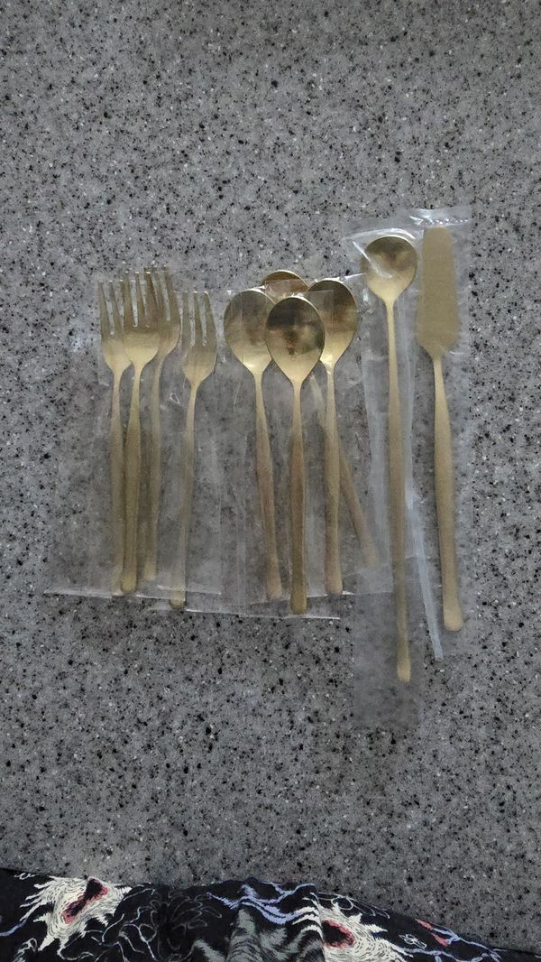 [국내생산] Satin 샤틴 골드 티스푼 티포크 디저트 세트 10P