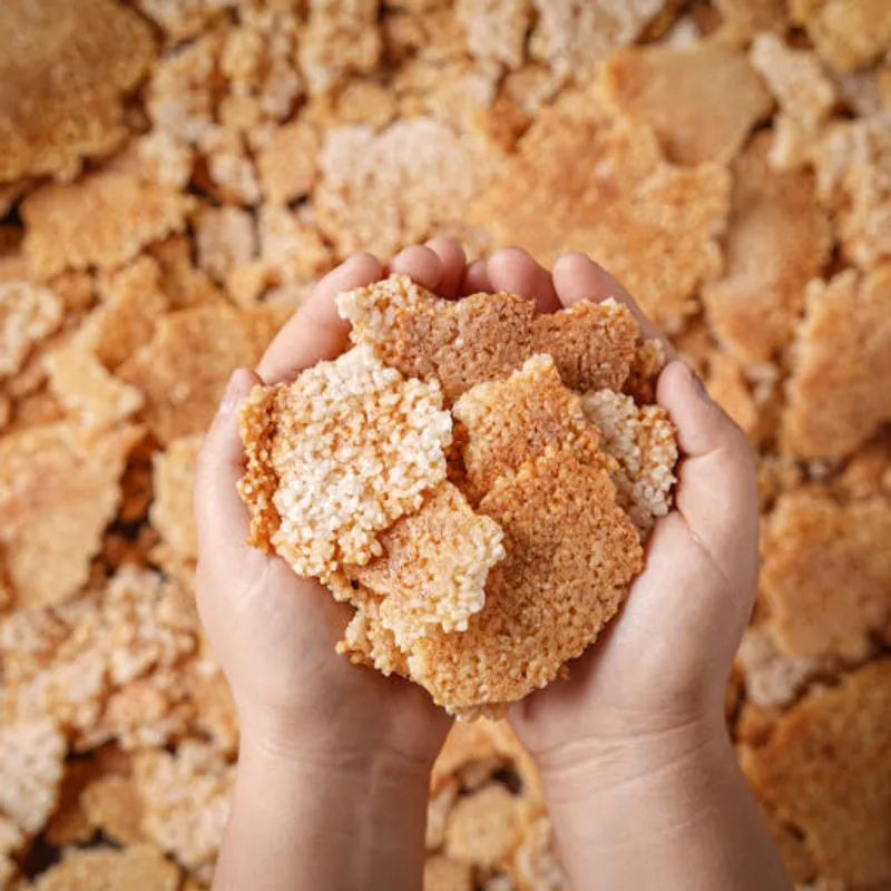 국내산 쌀눈쌀로 준비한 누룽지예요. 가마솥에 푹 끓여내 고소하고도 구수한 맛이 일품이랍니다. 입맛 없는 날, 한 그릇 떠 김치나 젓갈을 곁들여 먹으면 더할나위 없는 멋진 한 끼 식사가 완성되죠. 따끈하게 끓여 누룽지의 깊은 풍미를 한 술 가득 즐겨 보세요.