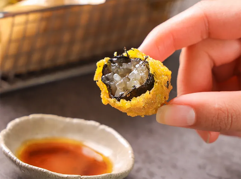 한입 크기의 미니 김말이튀김으로 어른은 물론 아이들도 흘리지 않고 편하게 먹을 수 있게 만들었습니다.