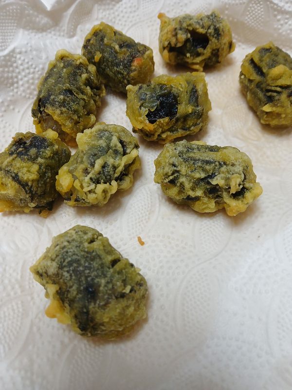 우선 한입크기라 아주 먹기 편하구요, 술안주로도 좋고 밥반찬으로는 간장에 살짝 찍어 먹으니까 간이 딱이네요~ 그리고 후기에 아주 약간 매콤한 맛이 느껴진다는 후기를 본거같은데 제입에는 그렇진 않았어요ㅎㅎㅎ오리지널 김말이 맛입니다~