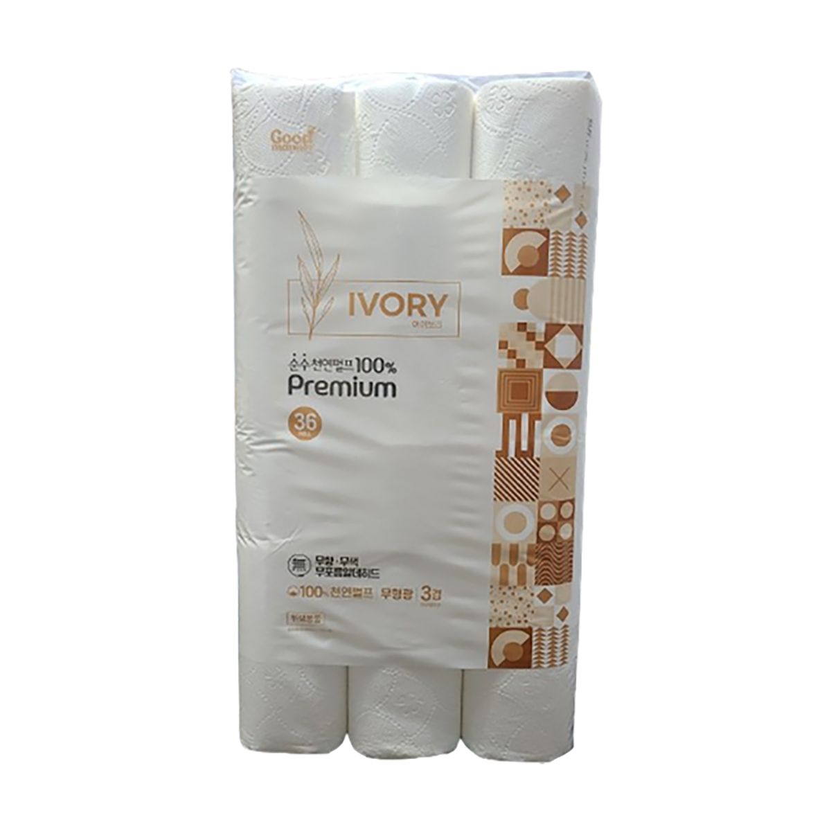 100% 고급 천연펄프 3겹 비데겸용 롤휴지 (아이보리) 22m*36롤