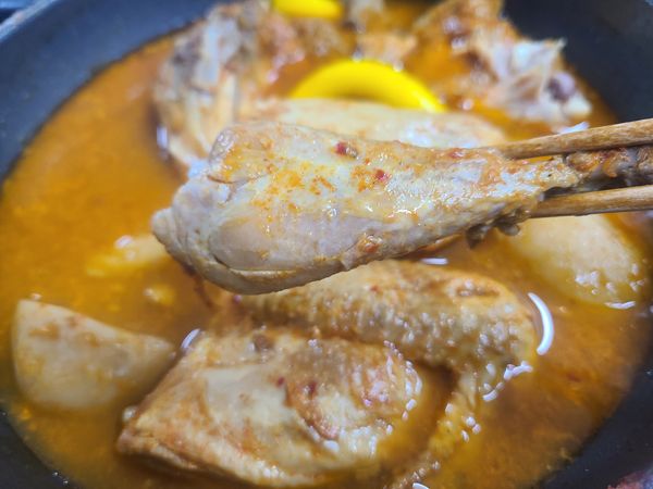 솔직히 말해서 닭도리탕에서 닭냄새 너무 심하게 나서 거의 못 먹었어요. 한 입 먹자마자 비린내 확 올라와서 입맛 뚝 떨어지고, 국물도 그 냄새 때문에 도저히 못 넘기겠더라구요. 양념은 괜찮은 것 같은데 재료 상태가 별로인 느낌이라 아쉬웠어요. 이 정도면 신선도 관리 좀 신경 써야 할 것 같습니다.