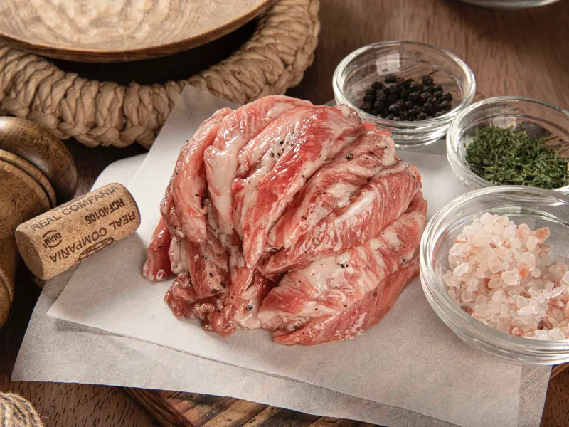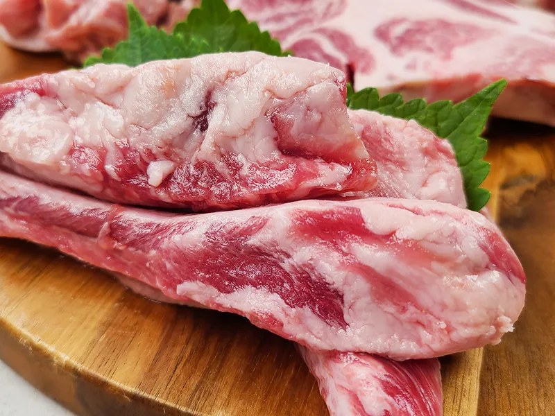 갈빗살은 갈비뼈 사이사이에 있는 근육을 발라낸 부위로, 쫀득한 식감과 고소한 맛을 지니고 있어요. 일반 돼지고기의 갈빗살보다 깊은 풍미와 남다른 식감을 맛보세요 :)