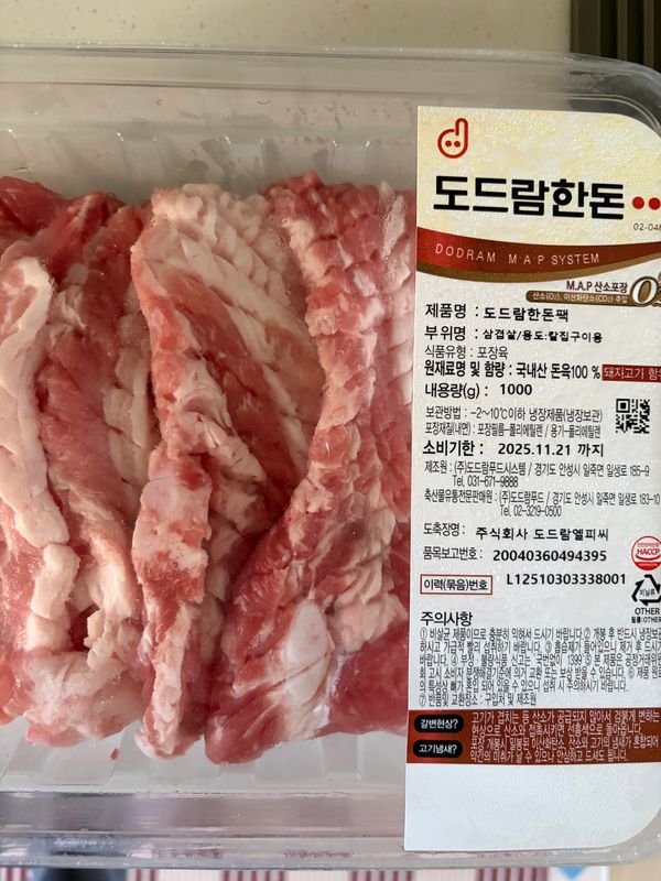 옵션: [도드람] 한돈 칼집 삼겹살(구이용) 1kg