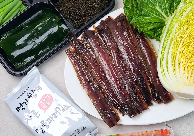 차가운 바닷바람이 깔끔하게 말려낸 포항 구룡포의 과메기 풍미를 그대로 담았습니다.