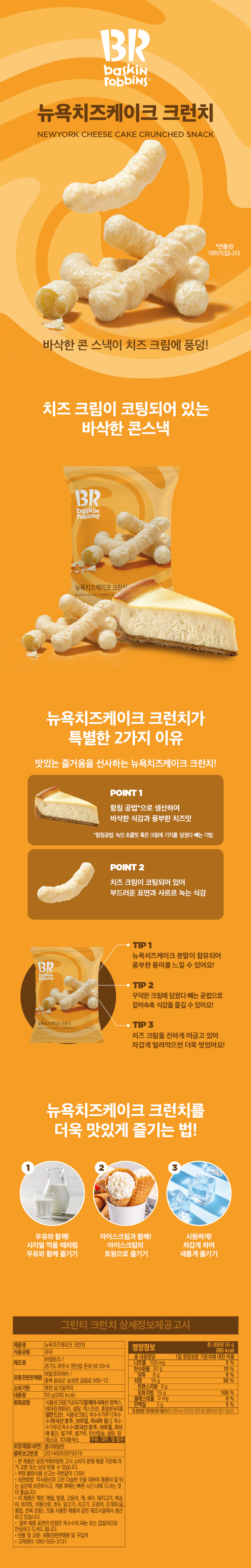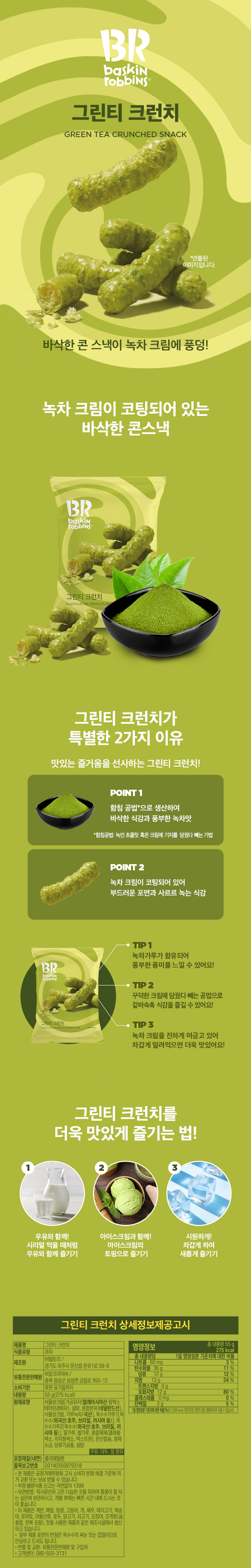 G[배스킨라빈스] 그린티 크런치 55g x 15봉 + 뉴욕 치즈케이크 크런치 55g x 5봉