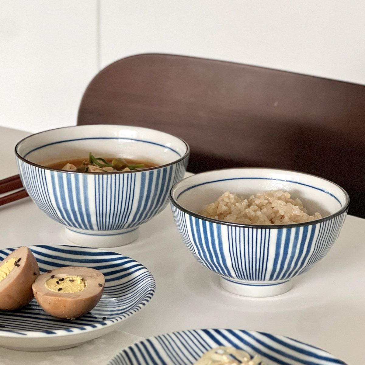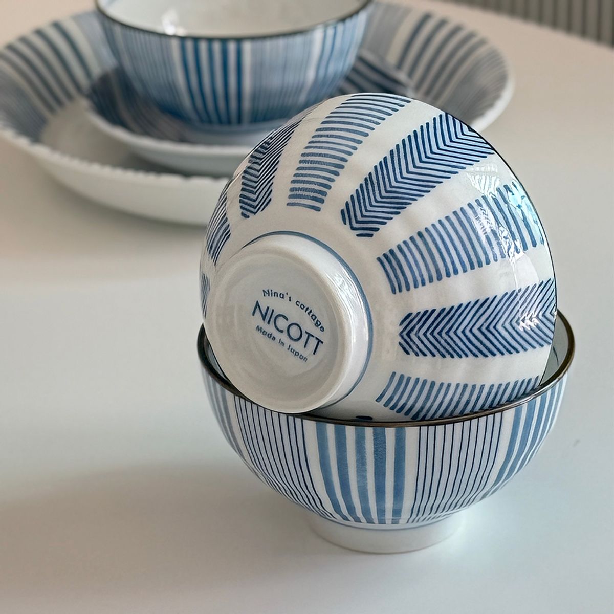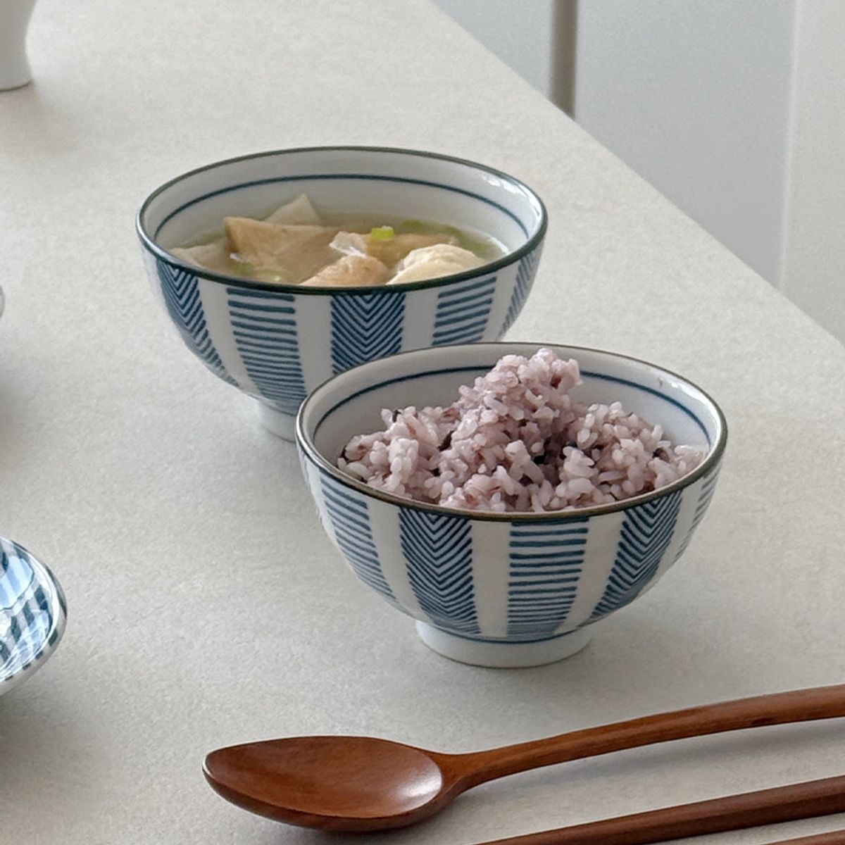 블루 스트라이프 4인 밥공기, 국그릇 세트 MADE IN JAPAN
