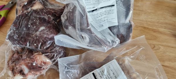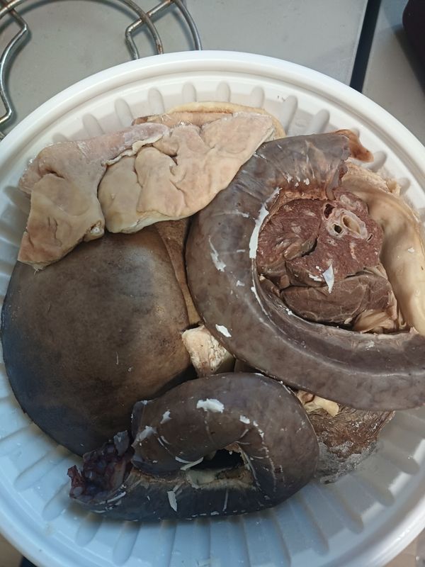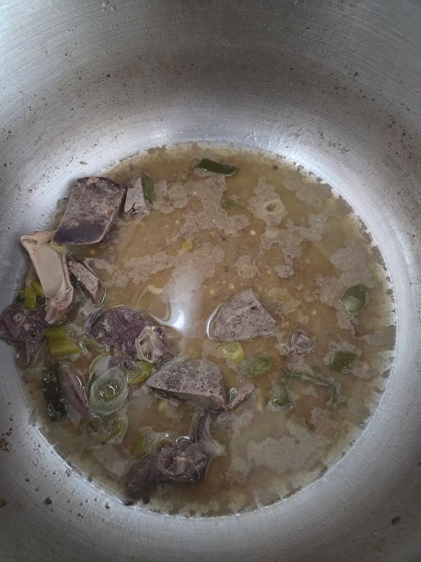 여러가지가 다 들어 있어 다양하게 즐겼습니다. 다만 간은 너무 커서 조금씩 소분했으면 좋았겠다 싶어요. 얼려져 있어서 나눌 수가 없네요. 즐기고 남은 걸로는 순대국처럼 끓어 먹었어요. 거의 다 먹은 사진이지만...ㅠ
