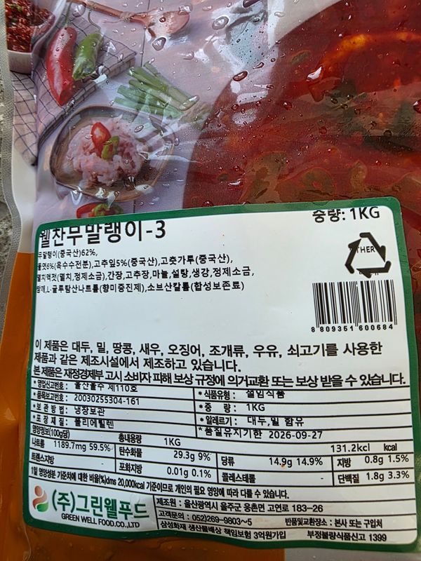 또한 무말랭이는 아삭하긴하나 양념이 물엿과 설탕사용으로 끈적하니 너무 달아서 담부턴 안사려구요. 그리고 무우말랭이,고춧잎,고추가루 모두 중국산...재료 잘 안살피고 산 제탓입니다^^