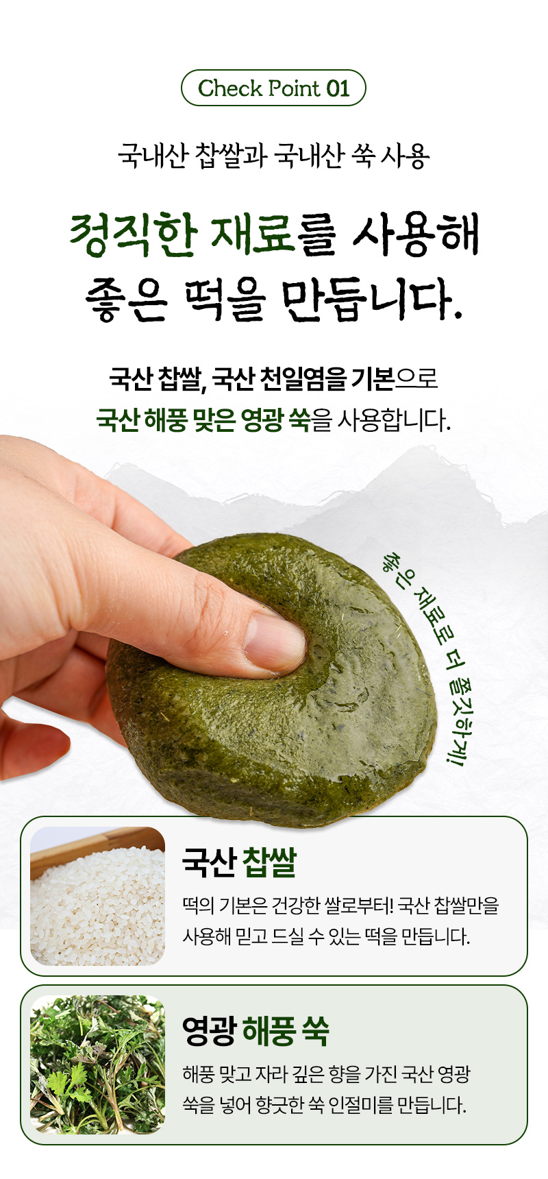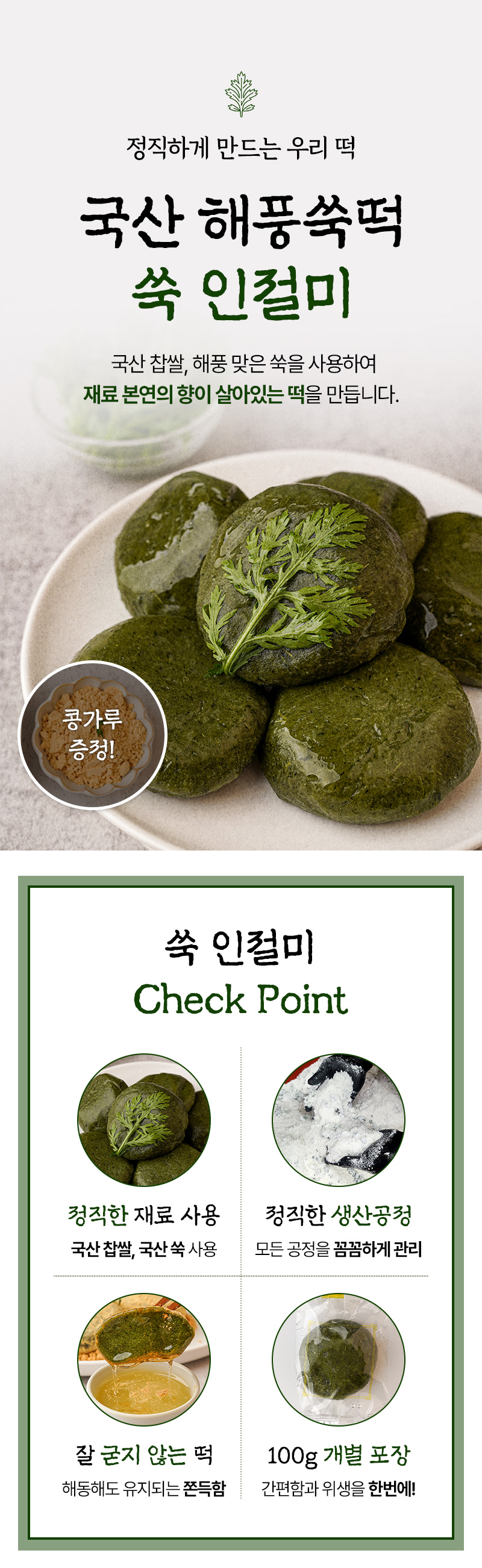[자연맛남] 국산 해풍쑥떡 쑥인절미 국산찹쌀 찰떡 1kg 10개 (콩가루증정)