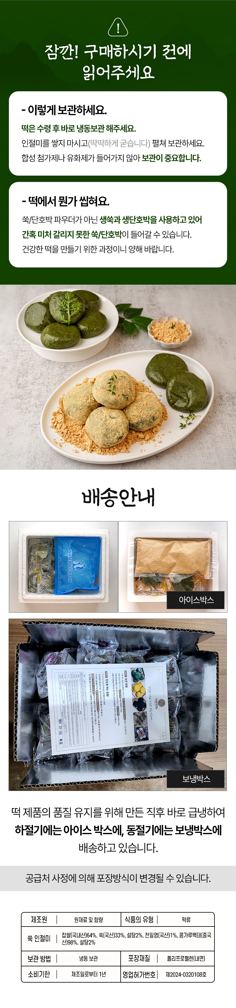 일단 받고서 하루를 깜빡잊고 그냥 베란다에 두었다가 담날 굳었겠당하고 꺼내보니 그대로 말랑말랑 바로 한것처럼 먹었보니 부드럽고 쫄깃하고 단맞도있고 콩가루안묻히고 그냥 먹어도 맛있었네요 다른 떡도 많은데 괜히 시켰나 했던 걱정을 싹 사라지게 만들었네요 너무 맛있게 잘 먹었습니다 감사합니다♡♡♡