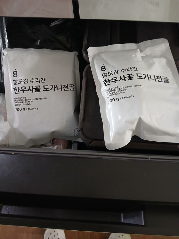 너무 맛있게 먹었어요 이틀 연속으로 두팩 먹었네요 ㅎㅎ 한팩으로 유아1 여성1해서 넉넉히 먹을수 있어요, 저희는 한끼 먹고 다음날 아침에 아이만 한그릇 더 먹었네요 도가니가 왜이렇게 푸짐하나 했더니 호주산이던데 그 외에는 한우 사골이에요 저는 재주문 하려구요
